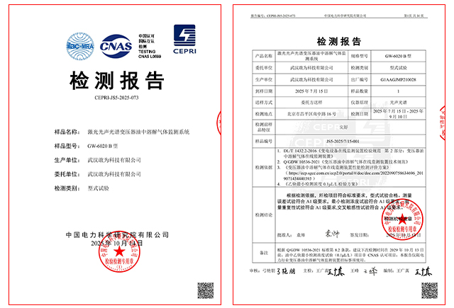 GW-6020型激光光聲光譜變壓器油中氣體監測預警裝置是基于先進的中紅外量子級聯激光光聲光譜技術面向國家電網及能源安全研制的高可靠性變壓器油中溶解氣體檢測系統,可實現變壓器油中溶解的H?、CO、CO?、CH4、C?H?、C?H?、C?H?等故障氣體及微水含量的連續在線檢測,為變壓器提供全面的實時監測預警。適用于油浸式變壓器、電抗器等電氣設備的油中溶解氣體在線監測。除可用于發電、電網系統變電站以外,還可應用于鐵路、石油、石化、冶金、鋼鐵、煤炭等電力行業用戶。